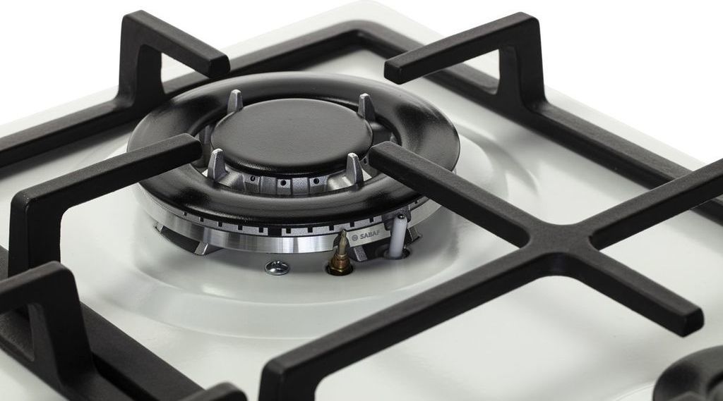 - Подача газа перекрывается при внезапном затухании пламени. Для каждой горелки на передней части варочной поверхности имеется поворотный металлический переключатель, регулирующий подачу газа, а также система автоматического электроподжига.