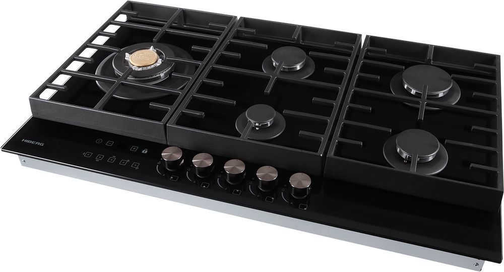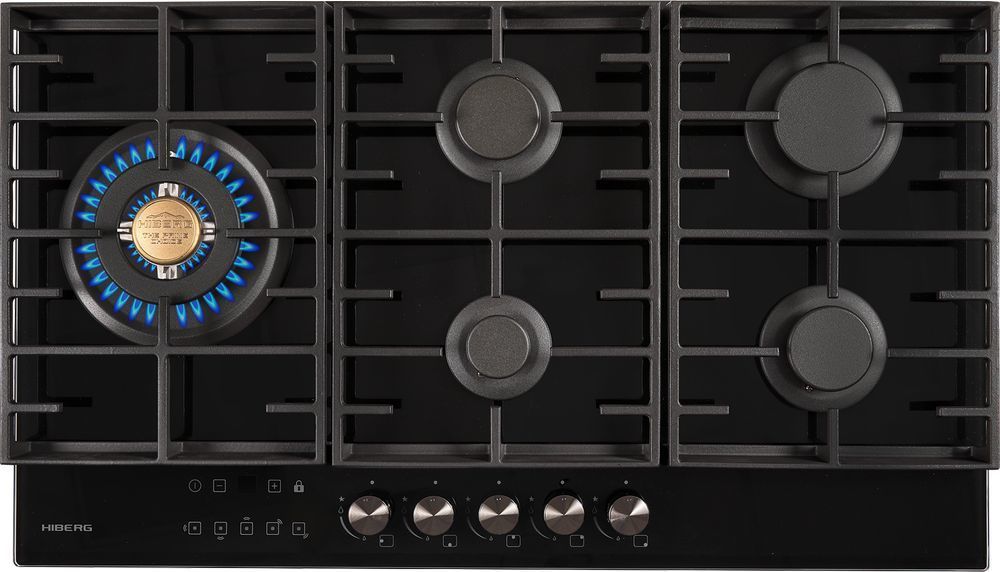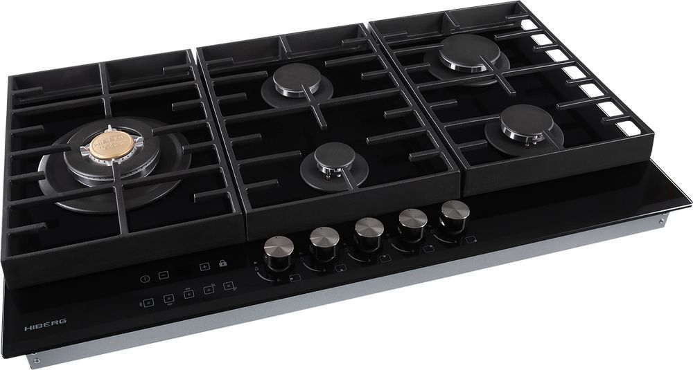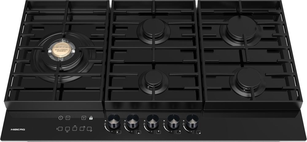 - Встраиваемая газовая варочная поверхность HIBERG VM 9155 B из закаленного стекла в черном цвете, оснащена 5 конфорками и функциями: автоматический «электророзжиг», «газ-контроль» и сенсорный таймер отключения. В комплект варочной поверхности входит дополнительный набор ручек регуляторов в ретро-стиле.
