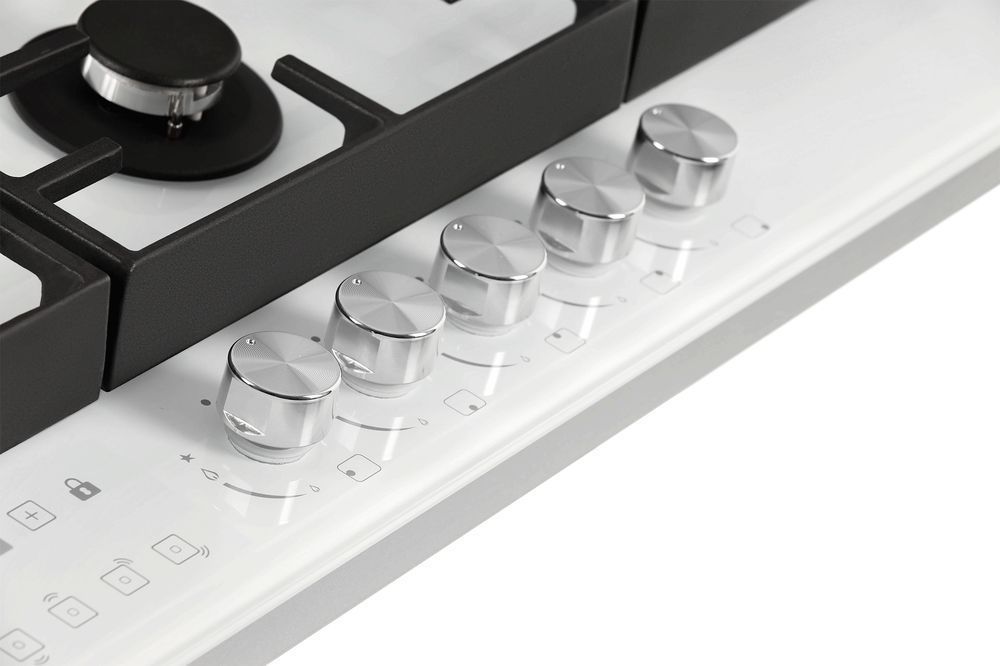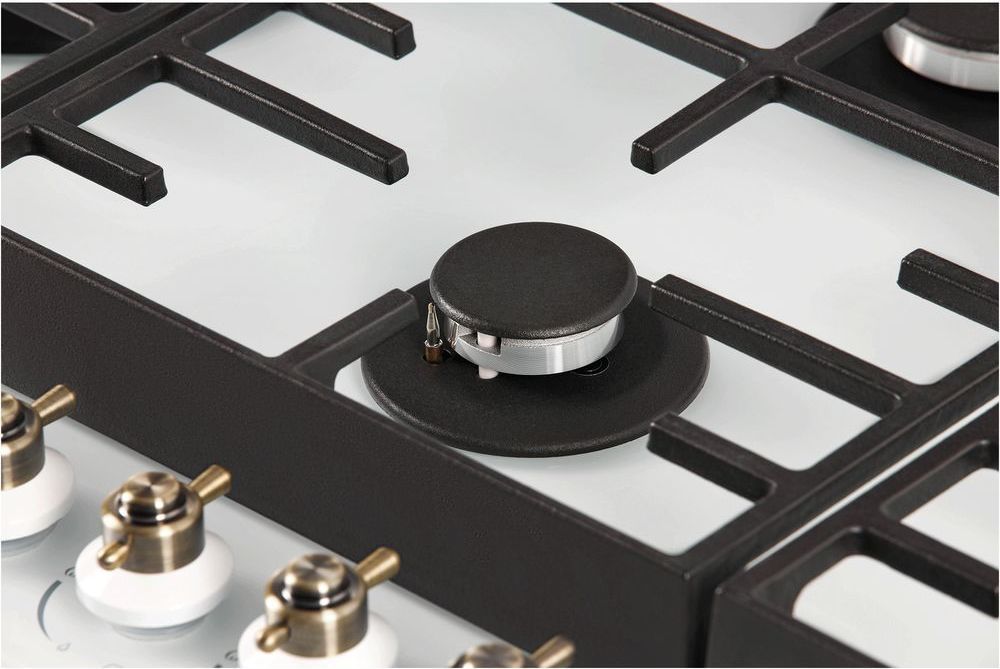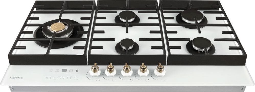 - Встраиваемая газовая варочная поверхность HIBERG VM 9155 W из закаленного стекла в белом цвете, оснащена 5 конфорками и функциями: автоматический «электророзжиг», «газ-контроль» и сенсорный таймер отключения. В комплект варочной поверхности входит дополнительный набор ручек регуляторов в ретро-стиле.