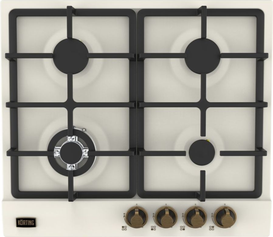 Газовая варочная поверхность Korting HG 661 CTB, фурнитура бронза, цвет слоновая кость.