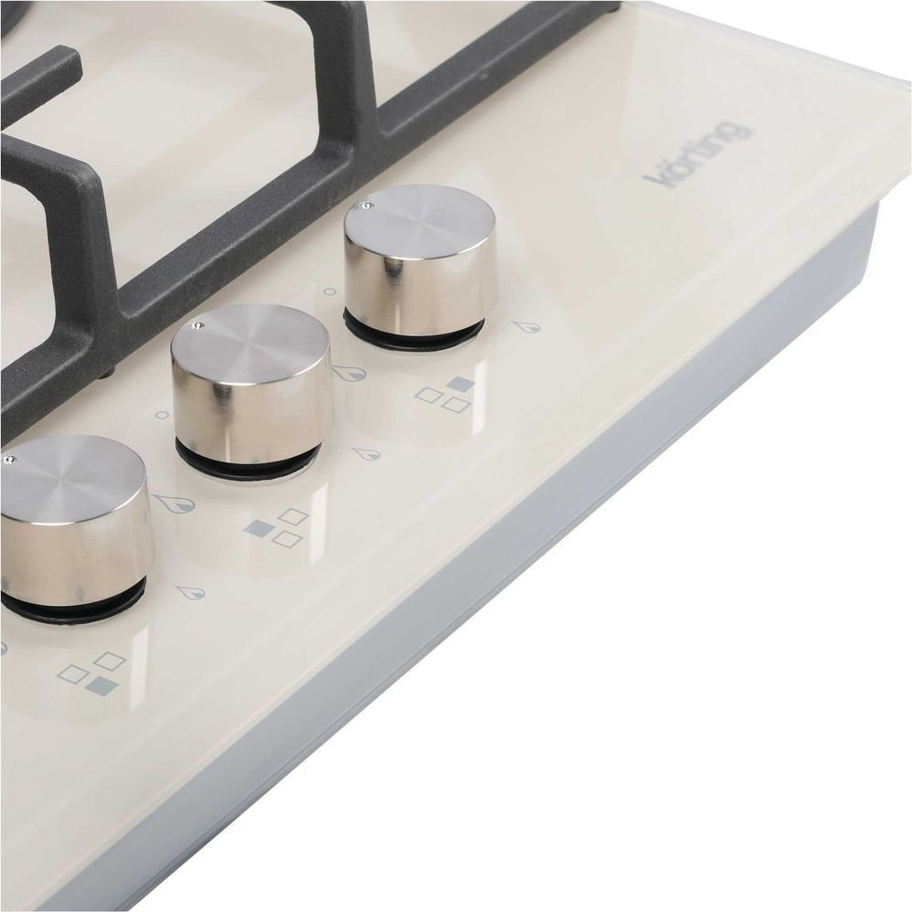 - Металлические поворотные регуляторы: Поворотные регуляторы газовых варочных поверхностей Korting выполнены из металла, что создает профессиональный стиль и препятствует их нагреву.