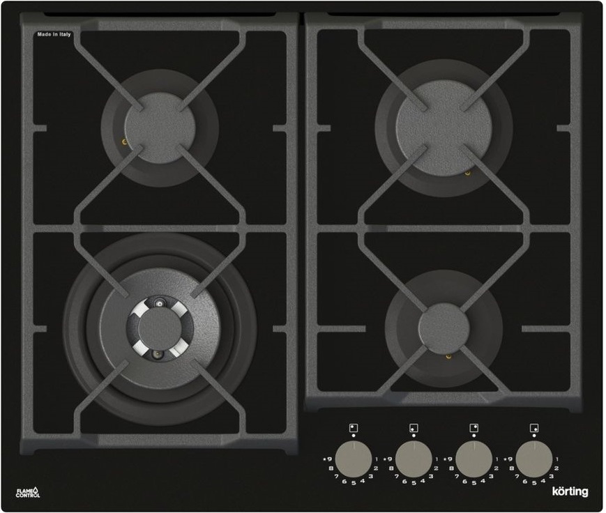 - Металлические поворотные регуляторы - Поворотные регуляторы газовых варочных поверхностей Körting выполнены из металла, что создает профессиональный стиль и препятствует их перегреву.