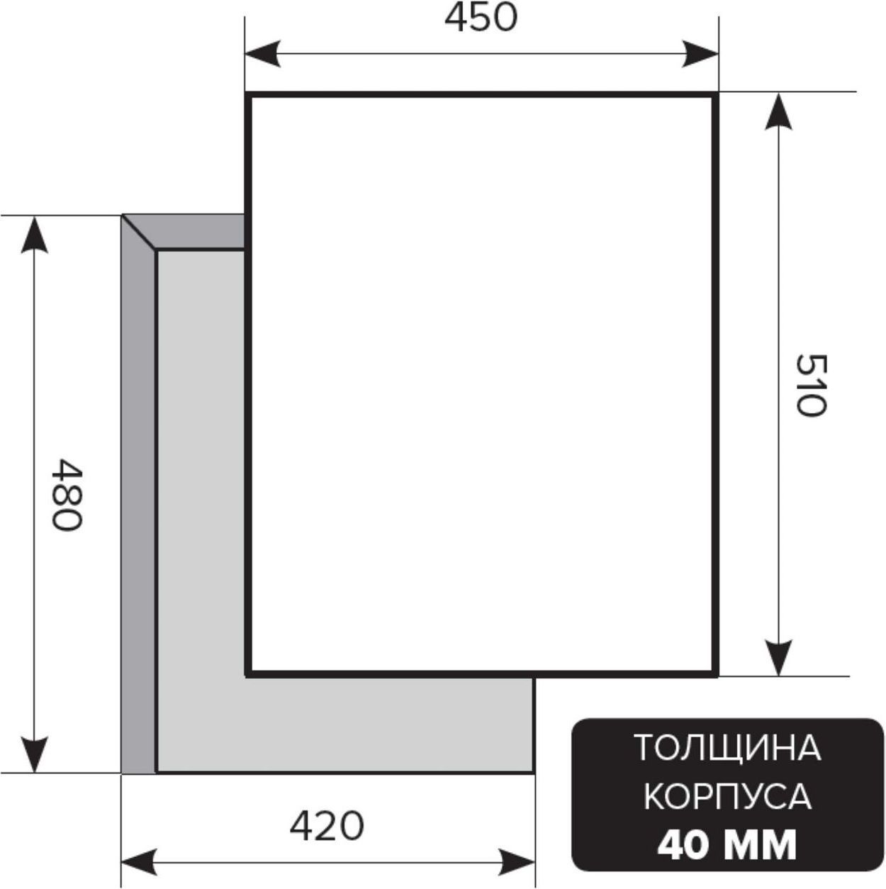 - Размер для встраивания (ВхШхГ): 420х480 мм