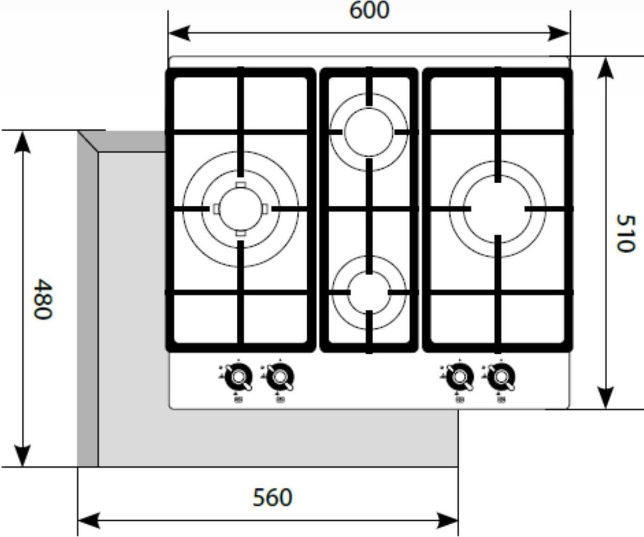 - Размер для встраивания (ВхШхГ): 560х480 мм