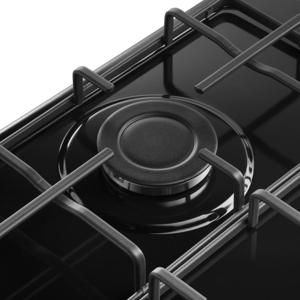 - Эмалированные решетки расположены вплотную друг к другу, образуя единую рабочую зону. Благодаря этому, вы можете передвинуть любую посуду с конфорки на конфорку не поднимая ее.