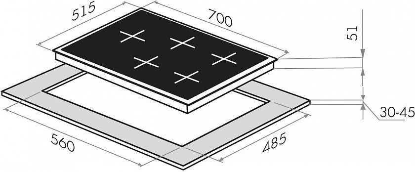- Размеры для встраивания (ШхГ), мм: 560х485