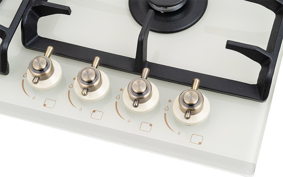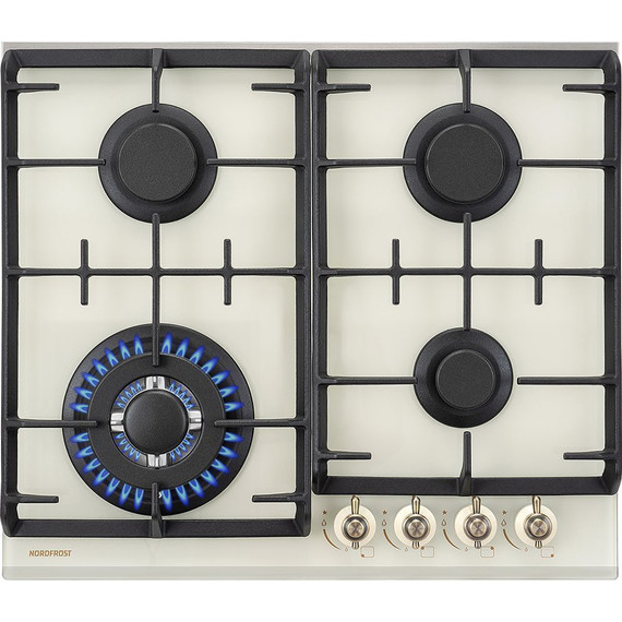 • Газовая варочная поверхность NORDFROST HM 6042 RY выполнена в стиле ретро из закаленного стекла в бежевом цвете, оснащена 4 конфорками с газовым подключением.