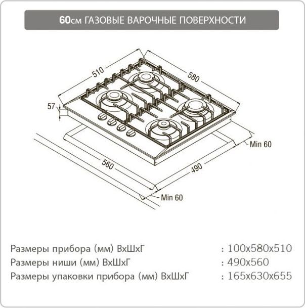 - Независимая газовая варочная поверхность 60 см.