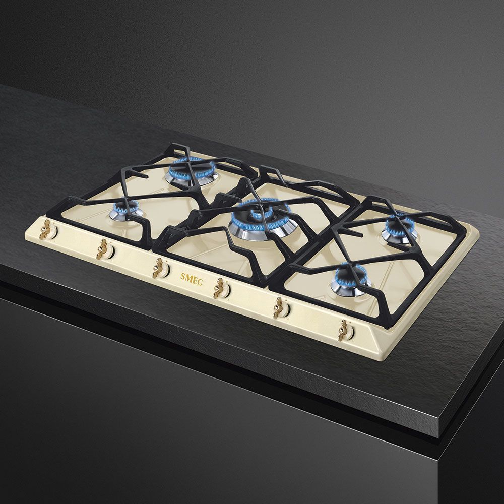 Газовая варочная поверхность Smeg Coloniale SRV896POGH, цвет кремовый.