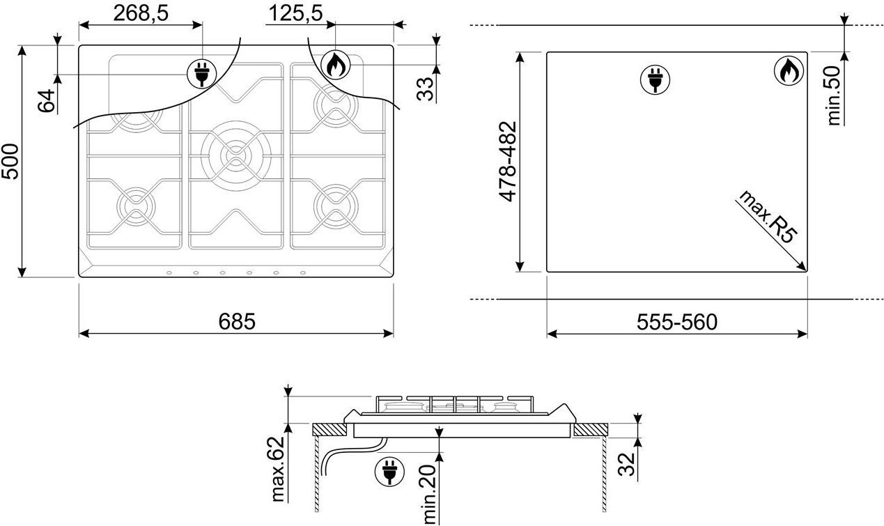 Газовая варочная поверхность Smeg Cortina SR775PO