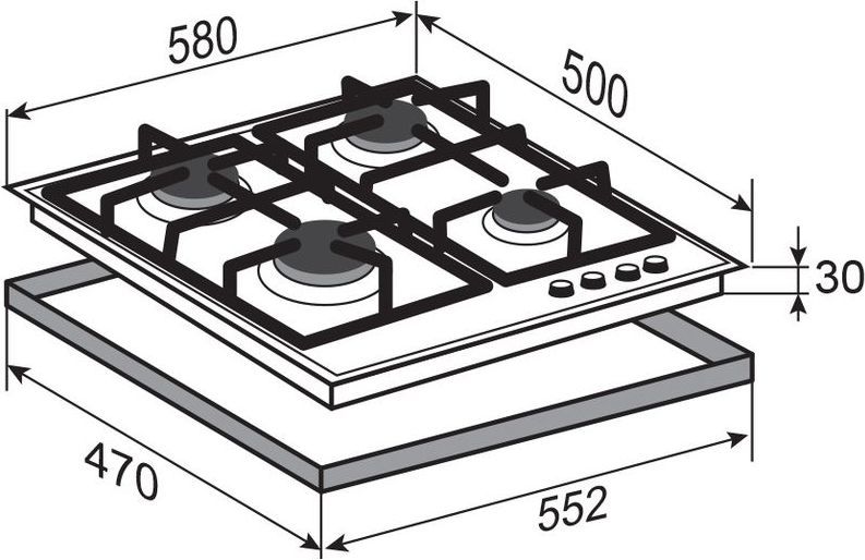 - Мощность горелок, Вт: 3400; 1880; 1880; 900