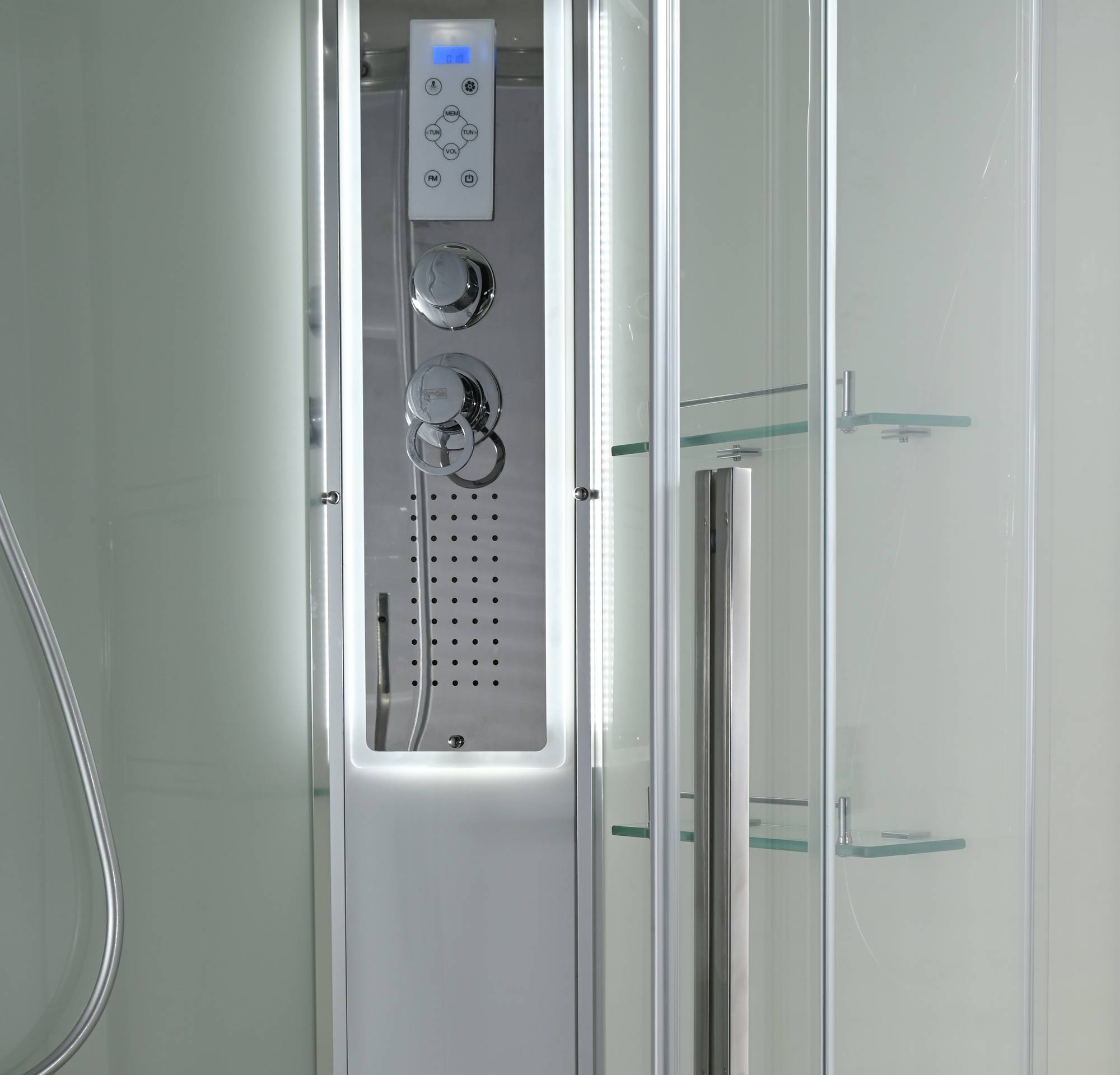 Стильная душевая кабина AvaCan сочетает в себе высокую функциональность, практичность и надежность. При изготовлении применяется безопасное закаленное стекло, надежно фиксируемое алюминиевым профилем.Профиль сделан из алюминия повышенной прочности. Сборка без силикона (увеличивает срок службы, защищает от протечек), внутренняя сборка (облегчает установку и ревизию; позволяет установить в ограниченном пространстве и обойтись без демонтажа других сантехнических приборов), смеситель резьбовой (без хомутов). Съемный экран поддона (позволяет осуществлять подключение и ревизию сифона).Двойные металлические ролики дверей (распределение нагрузки на два ролика, увеличивают срок службы). Душевая штанга(позволяет регулировать по высоте ручную лейку), ручная арома-лейка с витамином С (картридж в комплекте,есть возможность замены или удаления картриджа), полочки(из стекла, с ограничителем), сифон с гидрозатвором, сенсорный пульт управления с функциями: блютуз, LED подсветка, радио, вытяжка, гидромассаж спины, тропический (верхний) душ.