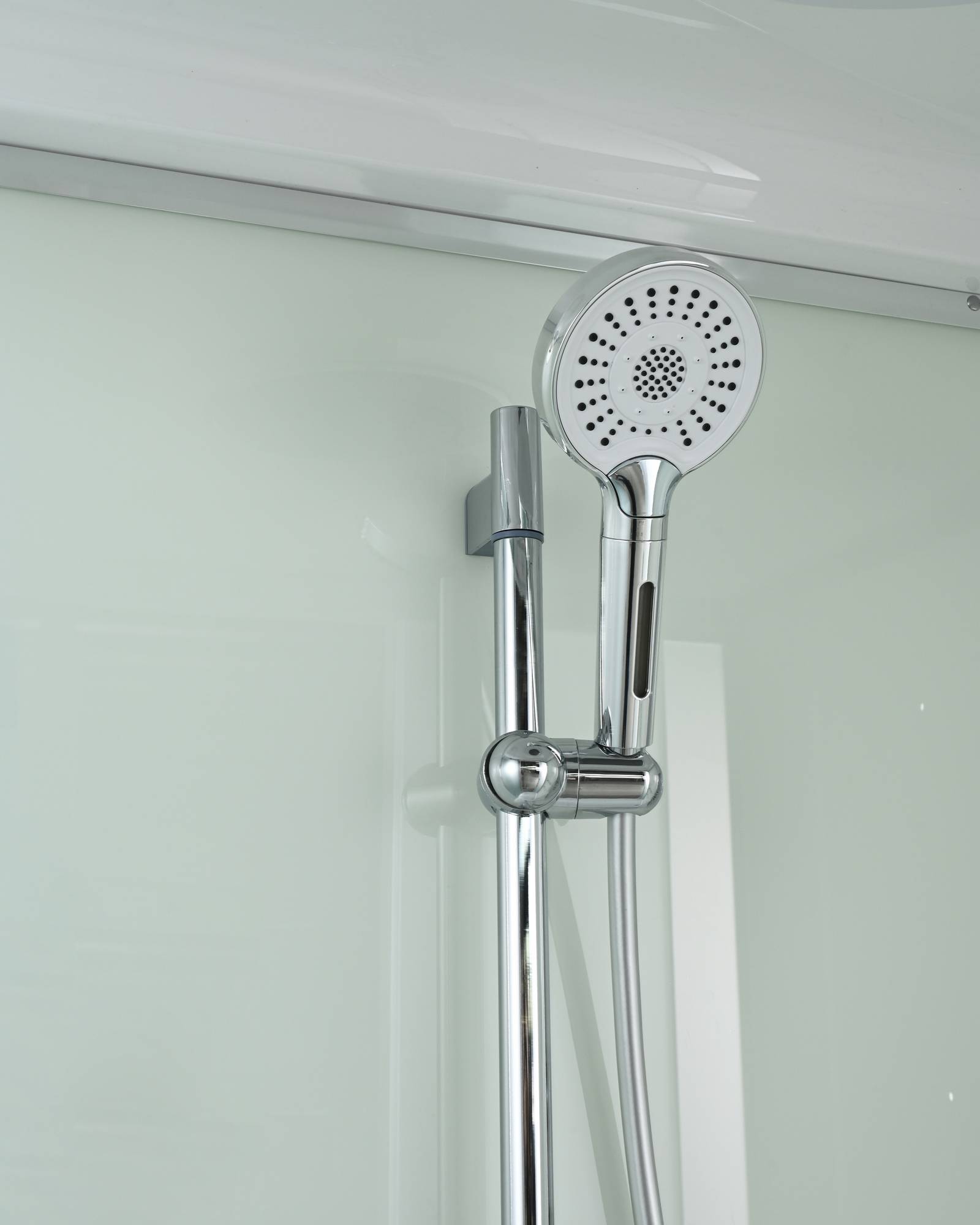 Стильная душевая кабина AvaCan сочетает в себе высокую функциональность, практичность и надежность. При изготовлении применяется безопасное закаленное стекло, надежно фиксируемое алюминиевым профилем.Профиль сделан из алюминия повышенной прочности. Сборка без силикона (увеличивает срок службы, защищает от протечек), внутренняя сборка (облегчает установку и ревизию; позволяет установить в ограниченном пространстве и обойтись без демонтажа других сантехнических приборов), смеситель резьбовой (без хомутов). Съемный экран поддона (позволяет осуществлять подключение и ревизию сифона).Двойные металлические ролики дверей (распределение нагрузки на два ролика, увеличивают срок службы). Душевая штанга(позволяет регулировать по высоте ручную лейку), ручная арома-лейка с витамином С (картридж в комплекте,есть возможность замены или удаления картриджа), полочки(из стекла, с ограничителем), сифон с гидрозатвором, сенсорный пульт управления с функциями: блютуз, LED подсветка, радио, вытяжка, гидромассаж спины, тропический (верхний) душ.
