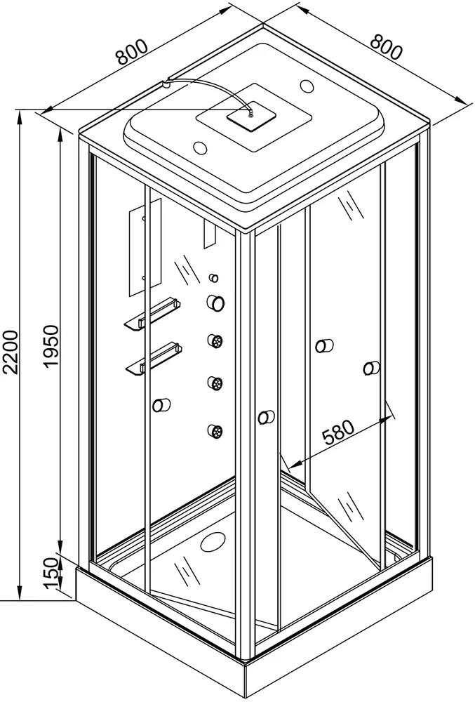 Гидробокс Avacan 80x80 см V8015, хром/прозрачное (безсиликоновая сборка)