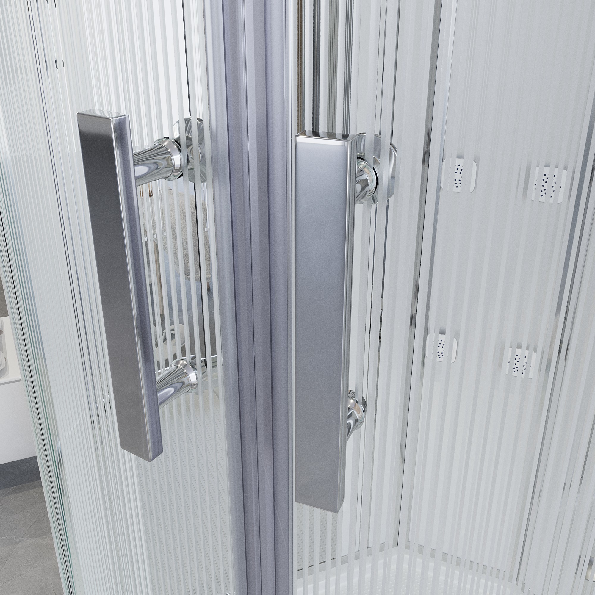 - Стенки лицевые сделаны из закаленного стекла, толщина 5 мм, прозрачные с рисунком полоски.