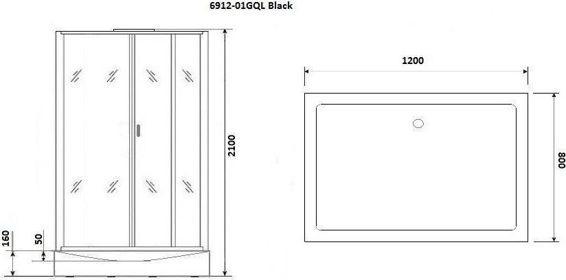 Гидробокс Niagara NG-6912-01GQL BLACK с низким поддоном, размер 1200x800x2100 мм, профиль чёрный, стекло тонированное, вход 450 мм.