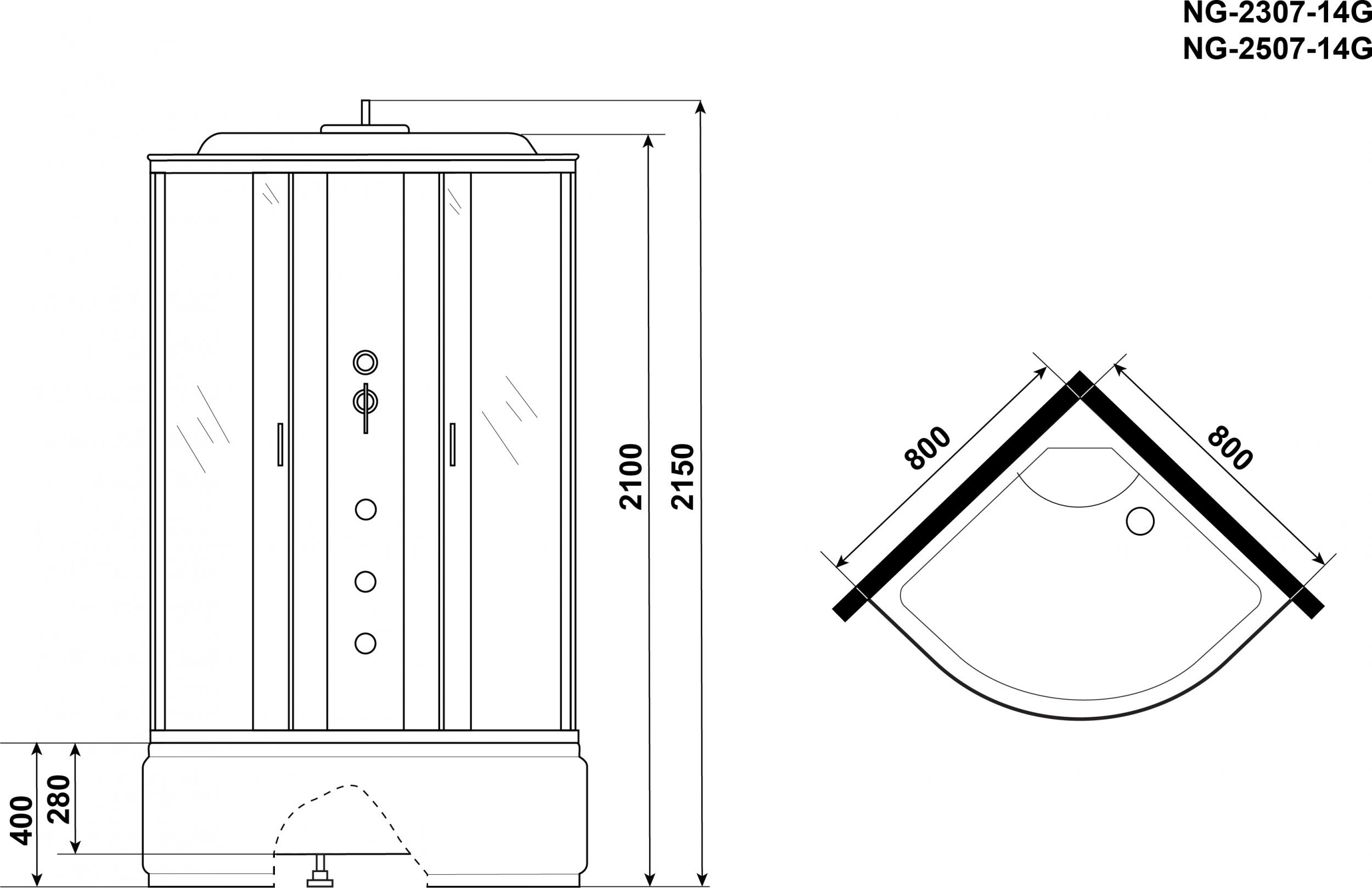 Гидробокс Niagara 23071424G с высоким поддоном, размер 800x800x2150 мм, профиль серебро, стекло матовое, вход 500 мм.