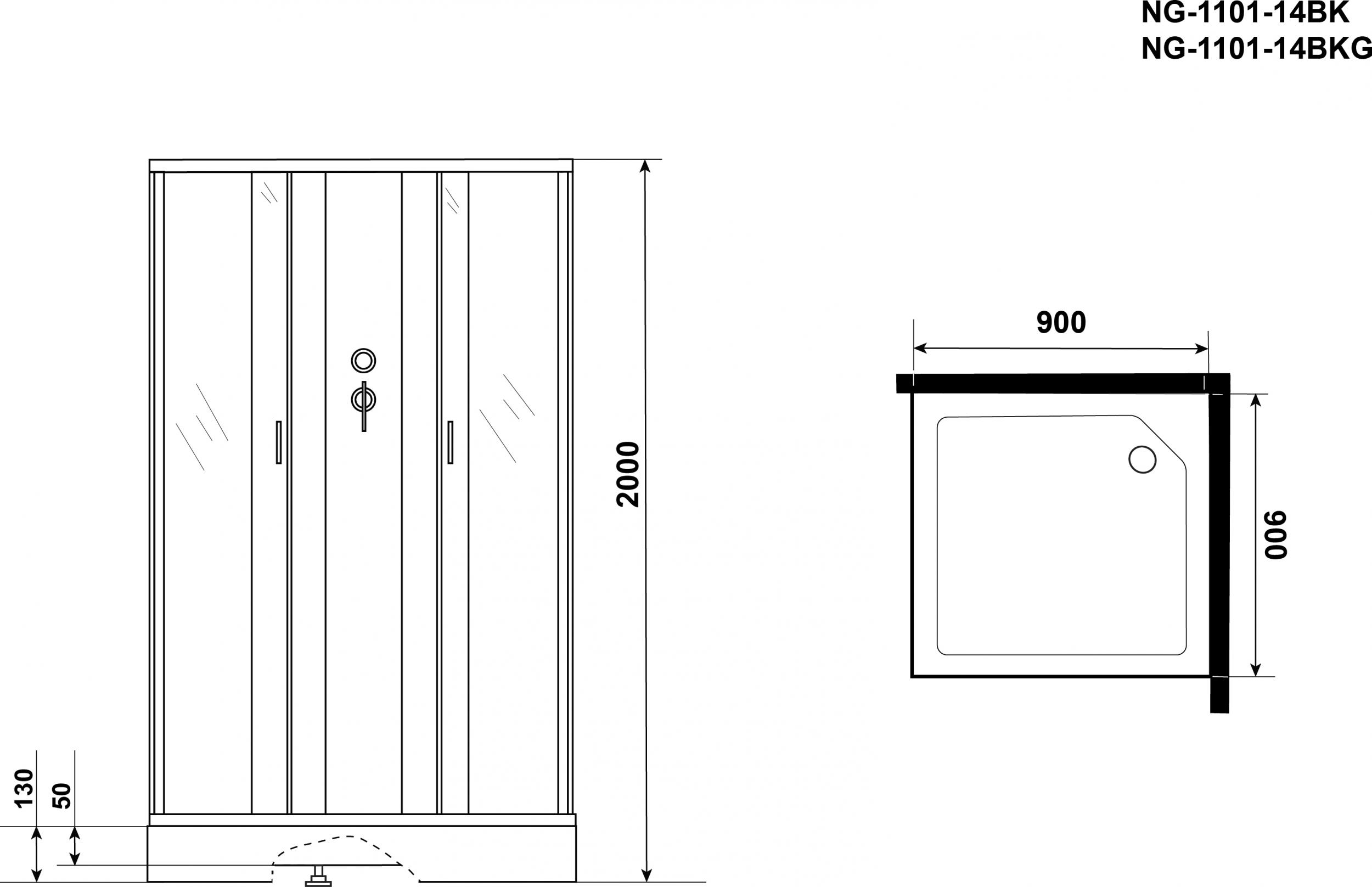- Бессиликоновая душевая кабина Niagara NG 1101-14BKG Без крыши с гидромассажем