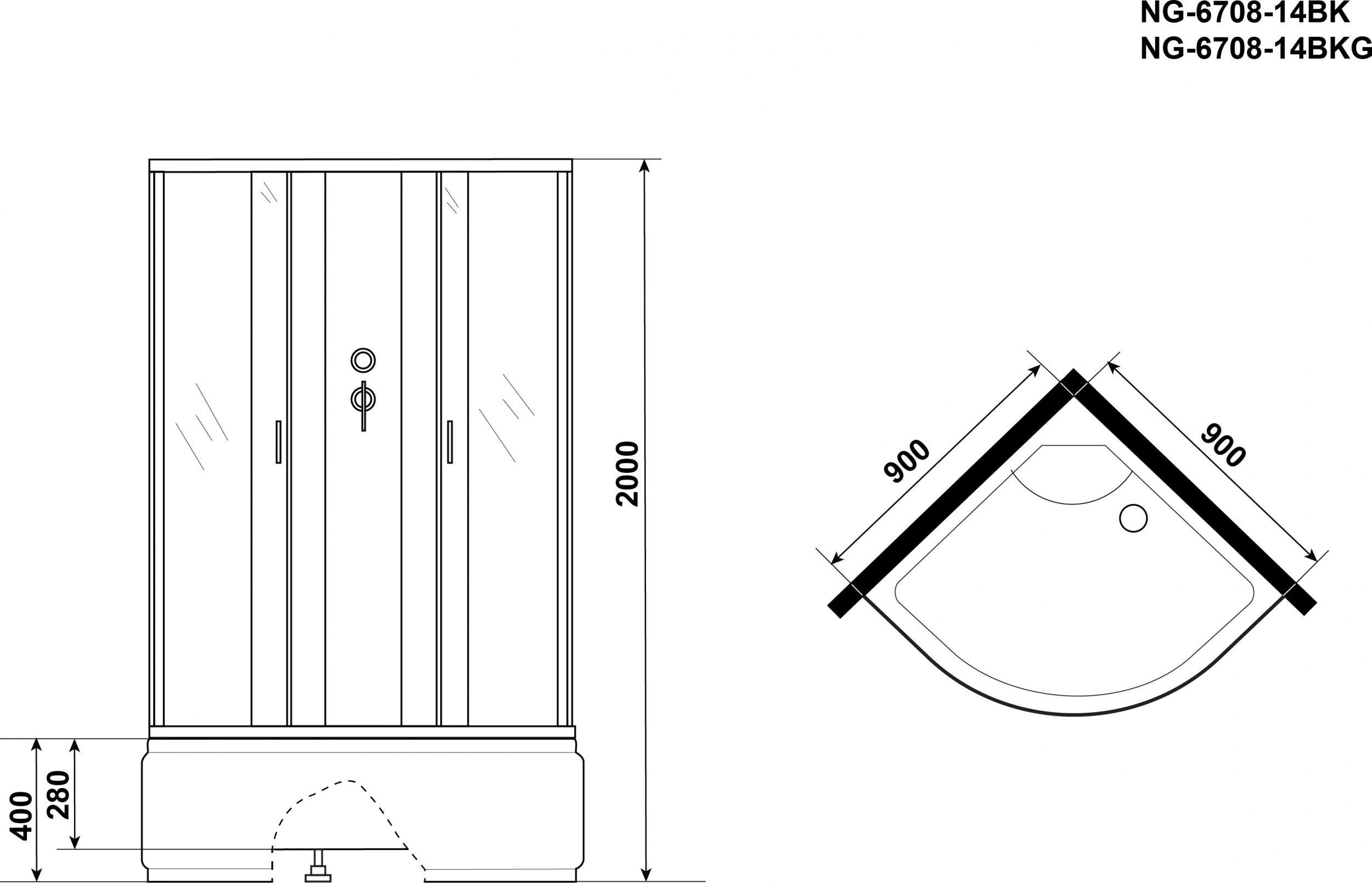 - Безсиликоновая душевая кабина Niagara NG 6708-14BKG Без крыши с гидромассажем