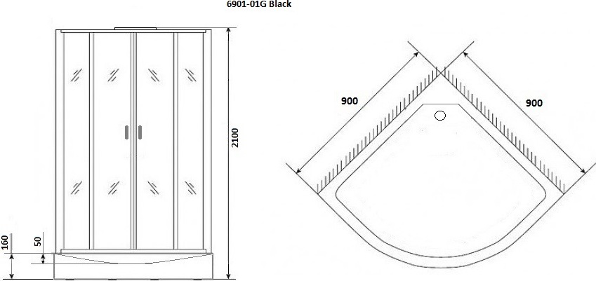 - Душевая кабина Niagara NG 6901G-01 Black - без силиконовая сборка и 6 мм каленое стекло, черный профиль!