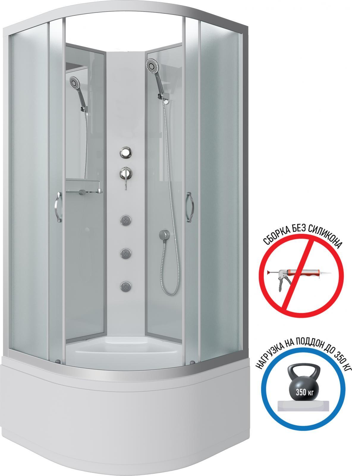Гидробокс Niagara Classic 100x100 см NG-2309-14BKG, серебро/матовое (безсиликоновая сборка)