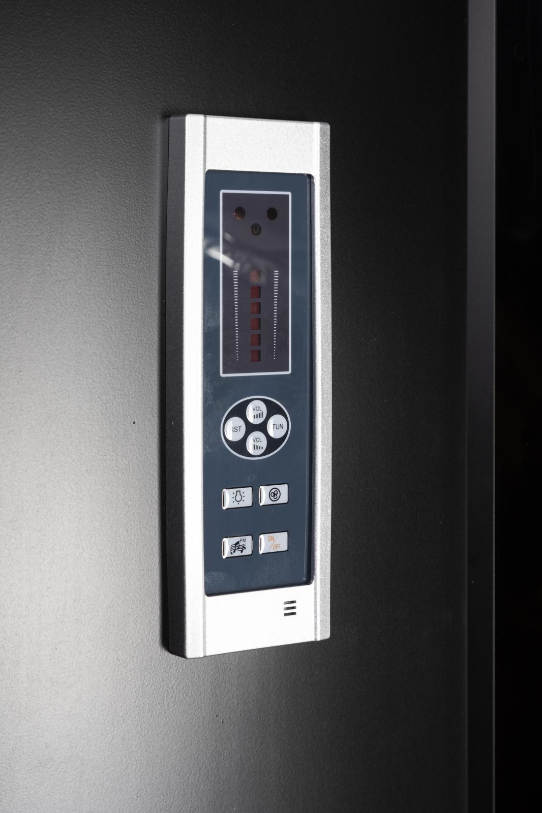 - На крыше кабины установлен тропический душ, так же присутствует дополнительная 2-х режимная душевая лейка, которая крепиться к панели.