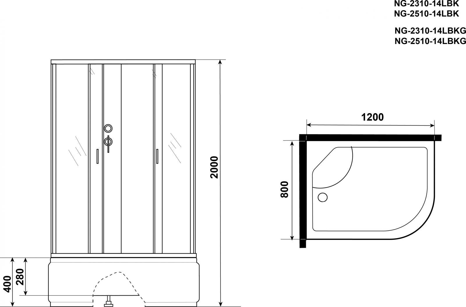 Гидробокс Niagara Classic 120x80 см NG-2510-14LBKG, серебро/тонированное (безсиликоновая сборка)