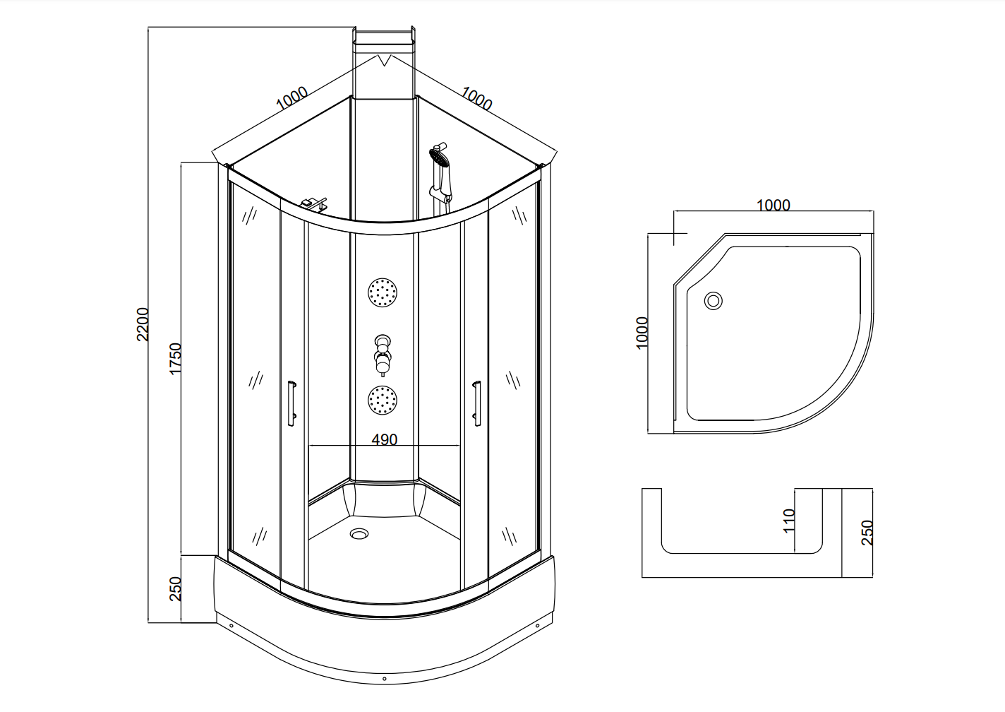 Гидробокс Taliente TA-100CW, высота поддона - 25 см, профиль - белый, стекло - прозрачное 5 мм.