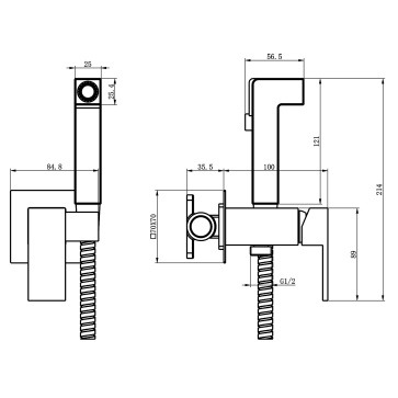Гигиенический душ Azario Graves AZ-KFX03B со скрытой частью в комплекте, материал латунь, цвет чёрный матовый.