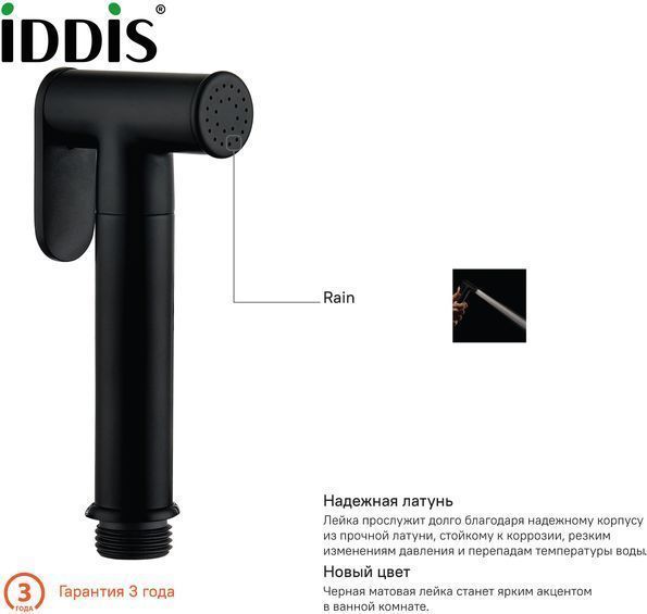 Гигиенический душ Iddis 020BBLGi20, 1 режим, материал латунь, цвет чёрный матовый.