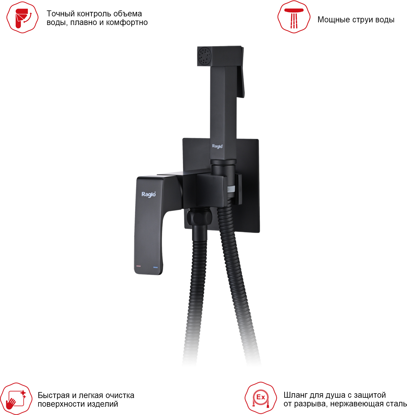 Набор для гигиенического душа Raglo R01.52.06 (со скрытой частью) чёрный