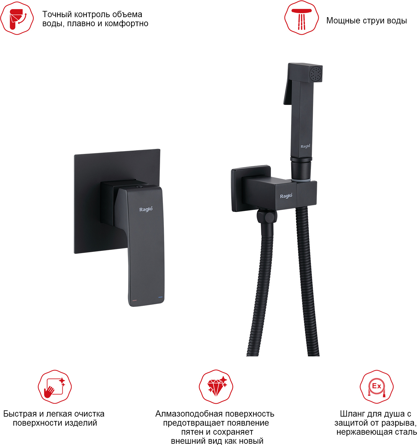 Набор для гигиенического душа Raglo R01.53.06 (со скрытой частью) чёрный