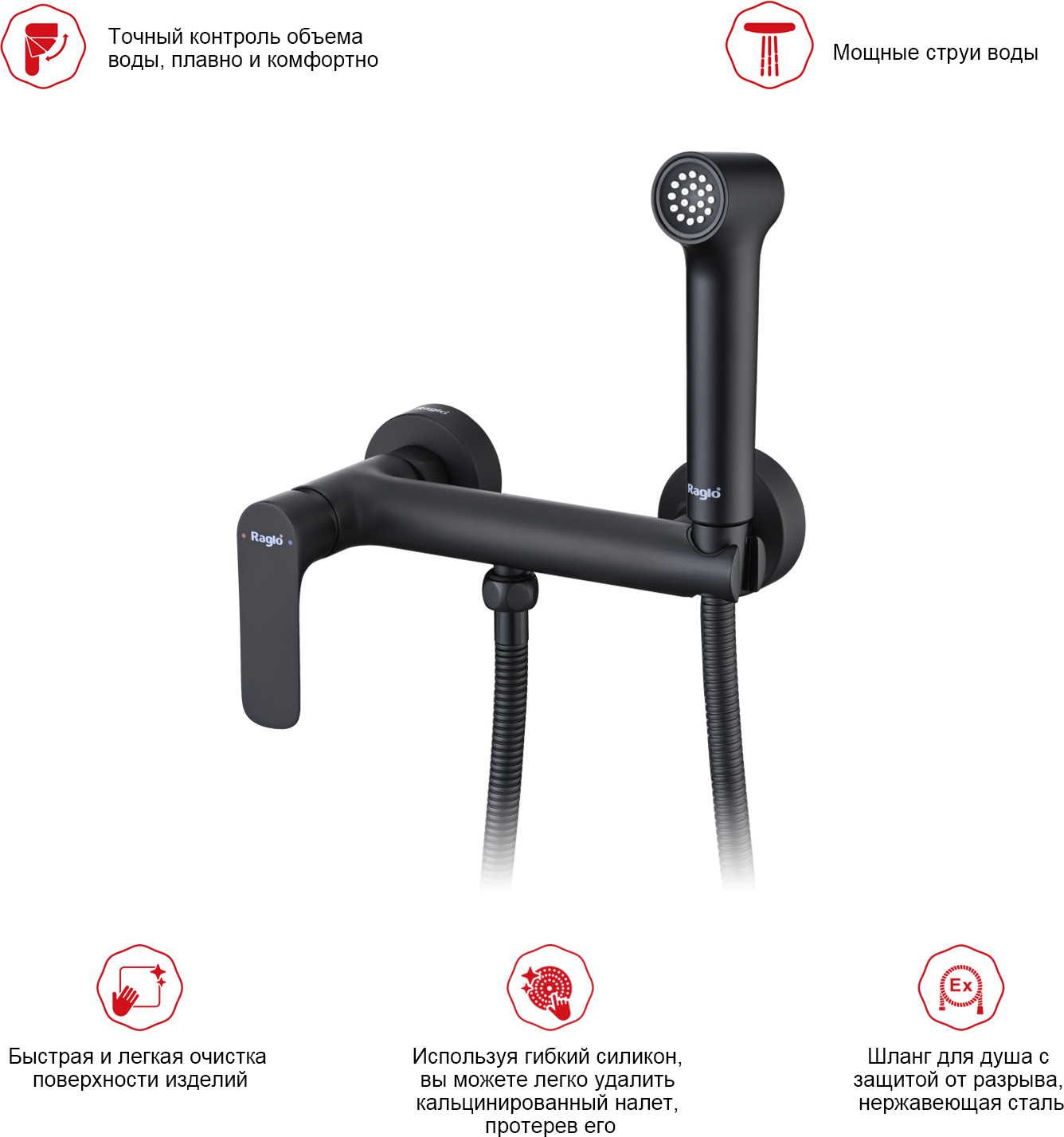 Набор для гигиенического душа Raglo R03.51.06, чёрный