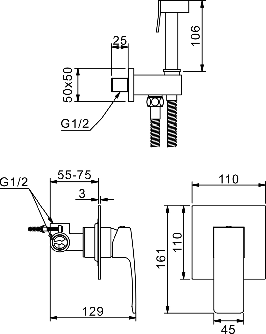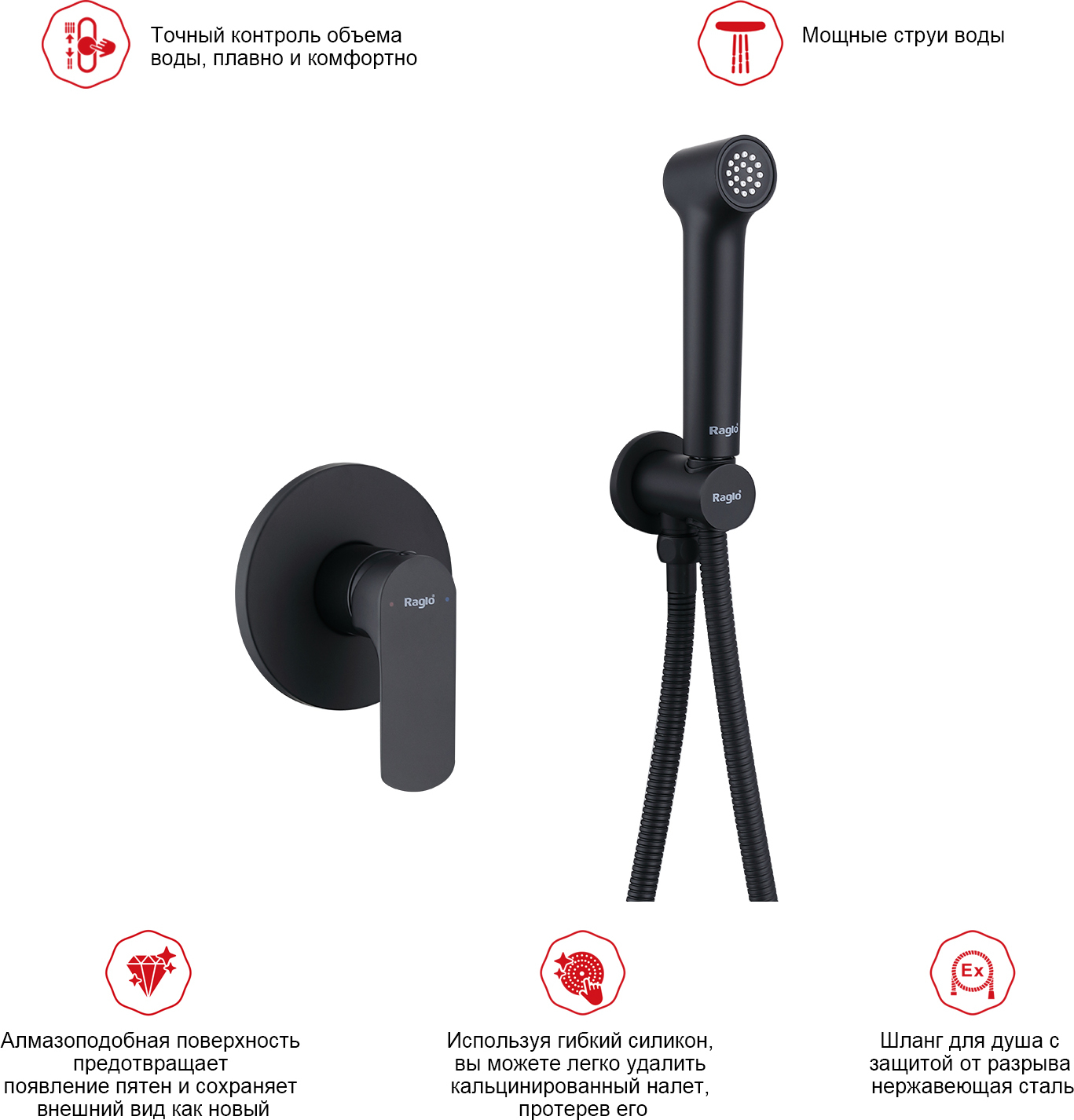 Набор для гигиенического душа Raglo R03.53.06 (со скрытой частью) чёрный