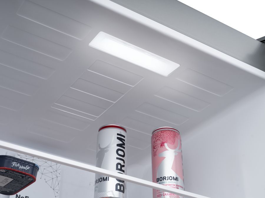 - С удобным LED освещением сверху и сбоку будет легко найти продукты в любой части холодильника.