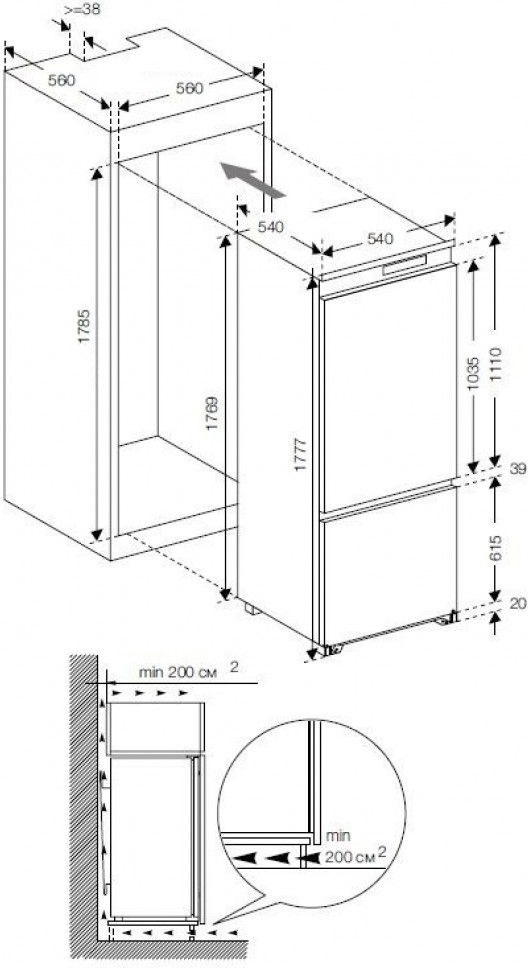 - встраиваемый двухкамерный холодильник
