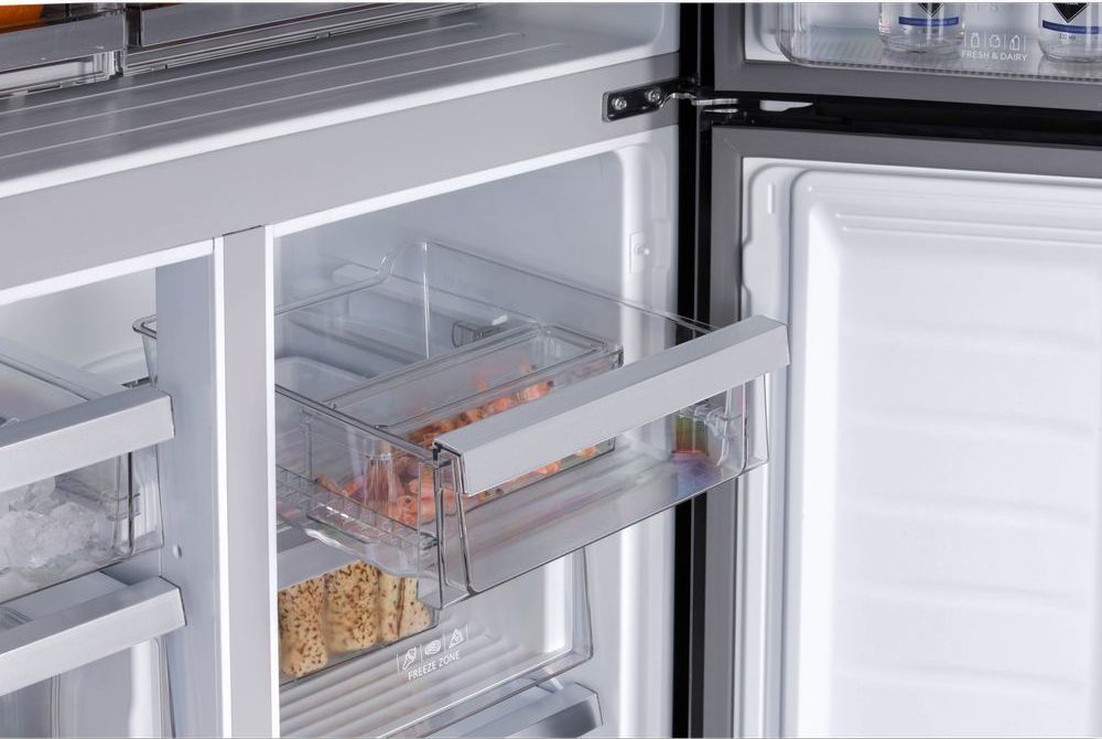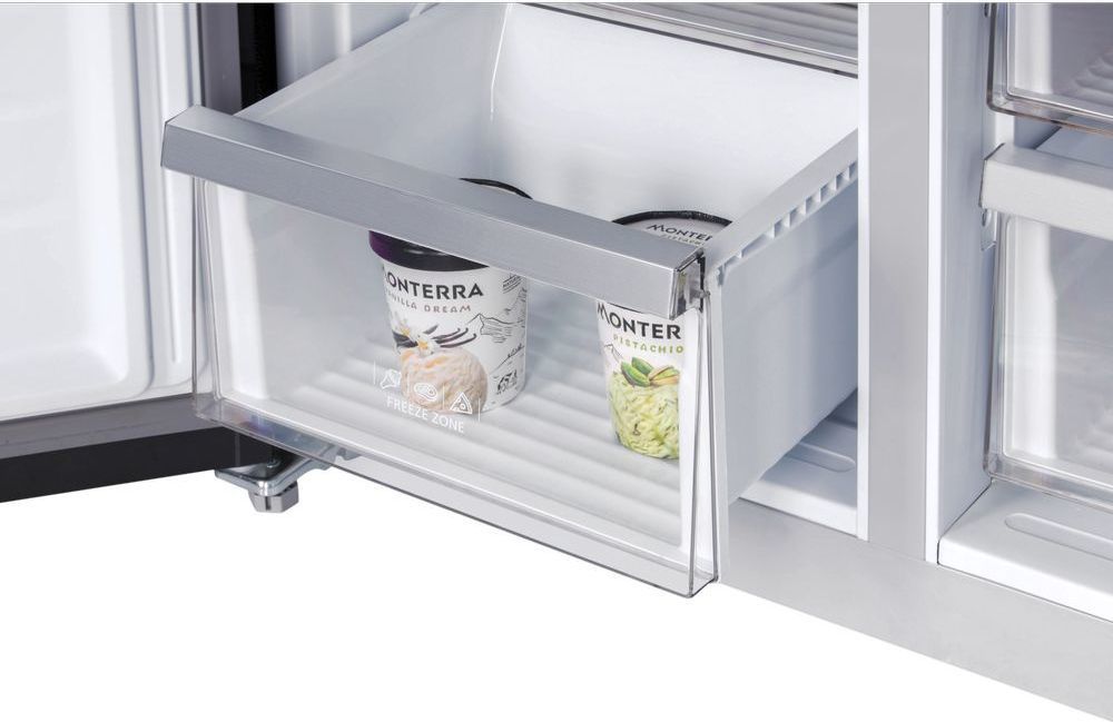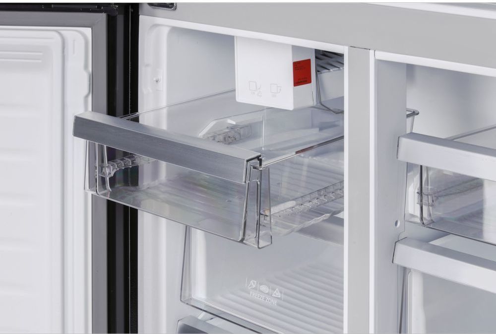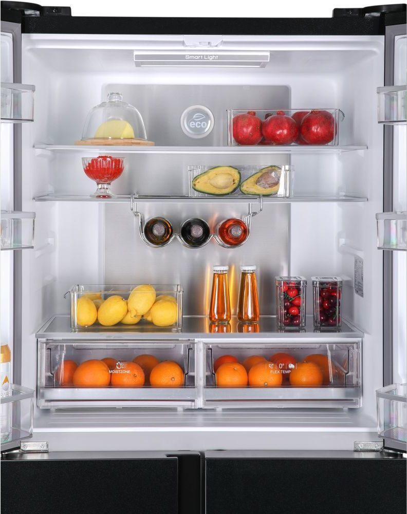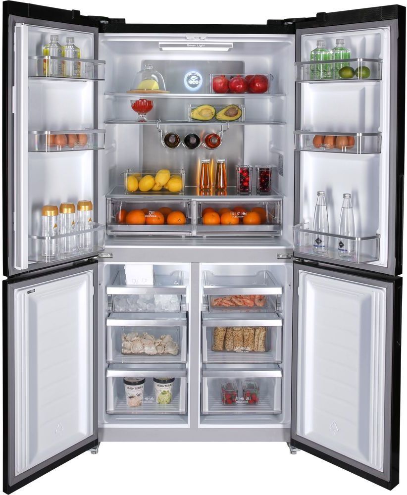 - Стильный и вместительный четырехдверный холодильник HIBERG RFQ-555DX NFGB с автоматическим ледогенератором и зоной свежести – идеальный выбор для просторной кухни. Общий объем холодильника 618 литров. Высота холодильника 1,83 м. Цвет: черное мерцающее стекло. Холодильник будет эстетично смотреться в просторных домах и квартирах.