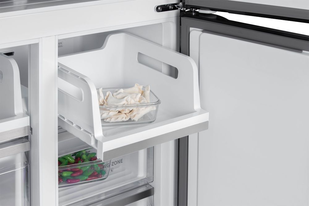 - Расположенный в холодильной камере ящик с гибкой настройкой температуры позволяет выбрать один из предустановленных режимов для напитков, мяса или фруктов: -4°С, 0°С и +4°С.
