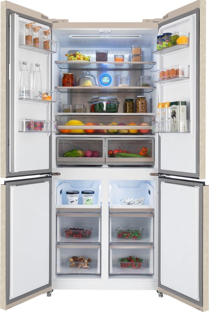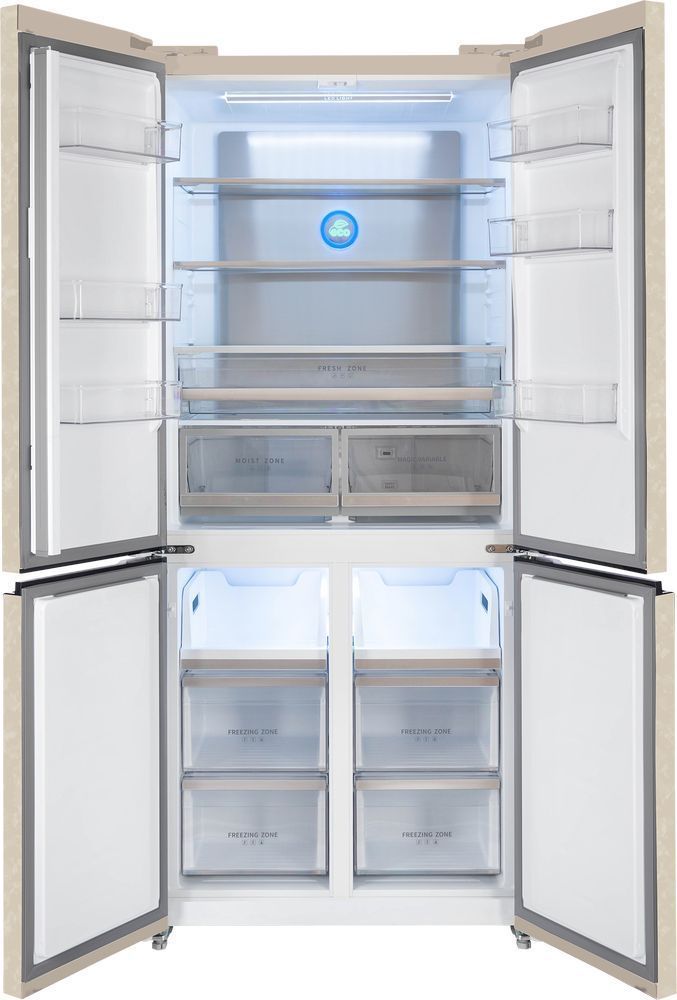 - Четырехдверный холодильник HIBERG RFQ-600DX NFYm в эффектном цвете «бежевый мрамор» и возможностью встраивания идеально впишется в кухонный гарнитур, создаст стильную и уютную атмосферу. Холодильник с общим объемом 526 литров предназначен для хранения большого количества продуктов и напитков в частных и загородных домах, просторных квартирах и современных крупных офисах.