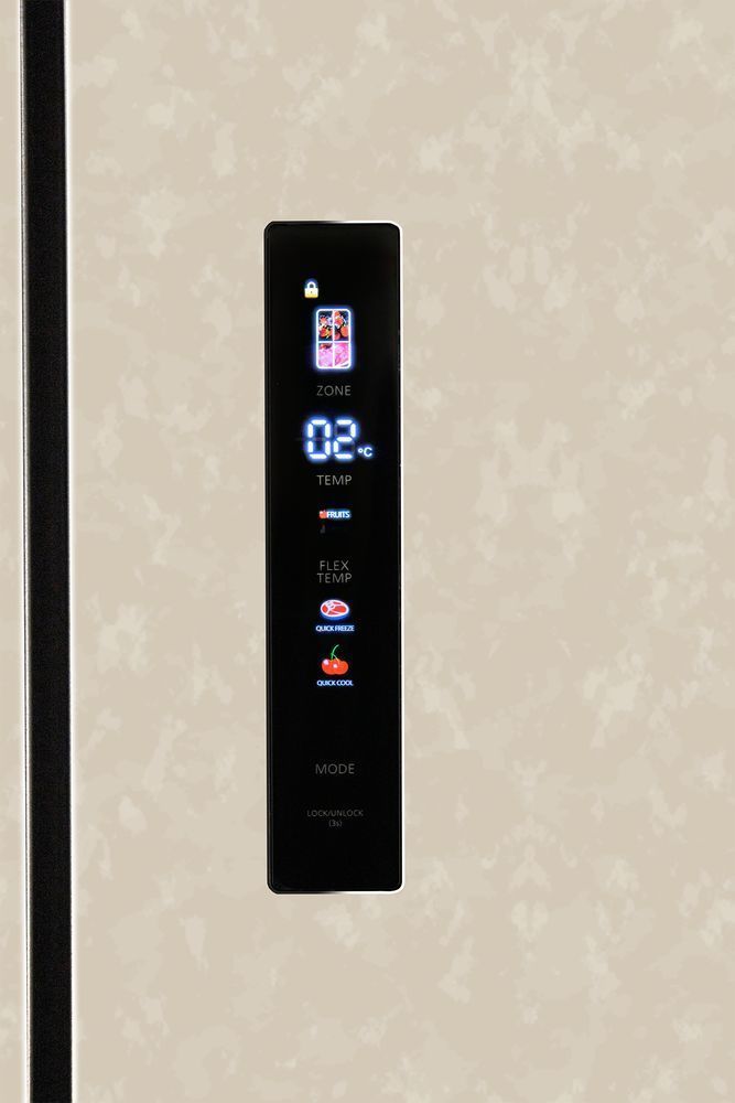 - Холодильник оснащен электронной панелью управления с цветным дисплеем, на котором можно установить точную температуру или выбрать необходимый режим.