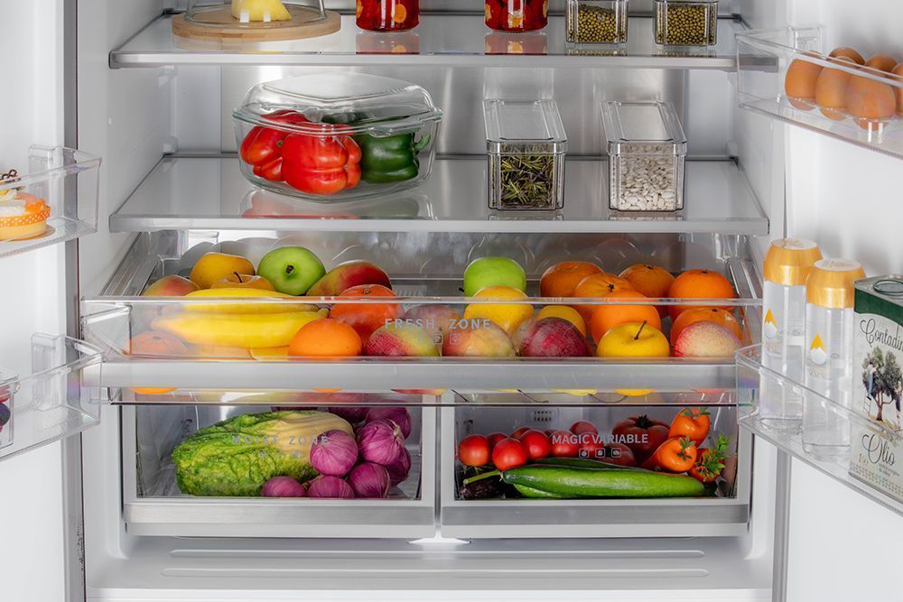 - Благодаря глубине холодильника 60 см его можно свободно встроить в кухонный гарнитур, обеспечив минимальное расстояние до кухонных шкафов всего в 5 мм. С системой нижнего отвода тепла стенки соседних шкафов не будут нагреваться. С помощью специальных дверных петель и обновленной конструкции двери модели открываются на 90 градусов, что обеспечивает удобный доступ к продуктам.