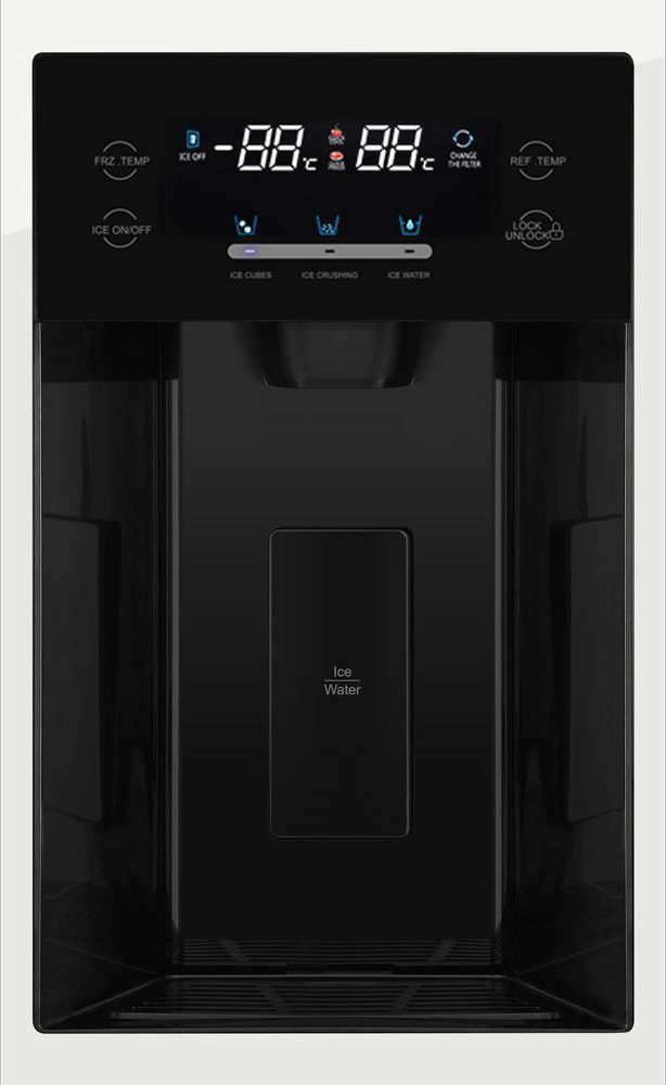 - Главная особенность холодильника – автоматический ледогенератор с прямым подключением к водопроводу. Наличие диспенсера со съемным фильтром позволяет выдавать совершенно чистую холодную воду, кубики льда или ледяную крошку. Фильтр подлежит замене по мере необходимости.