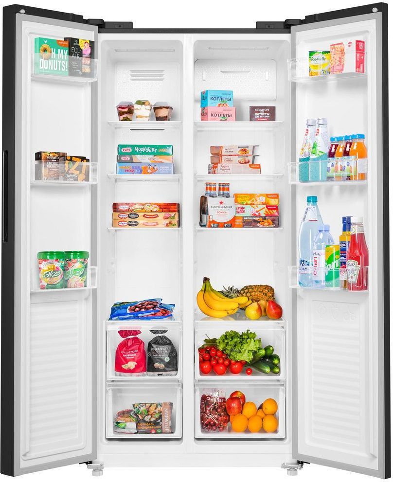 Холодильник Side by Side Maunfeld MFF177NFBE, система Full NoFrost, цвет чёрный.
