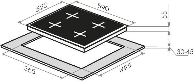 - Автоматическое отключение в случае перегрева, долгого простоя работающей конфорки и при намокании поверхности варочной панели.