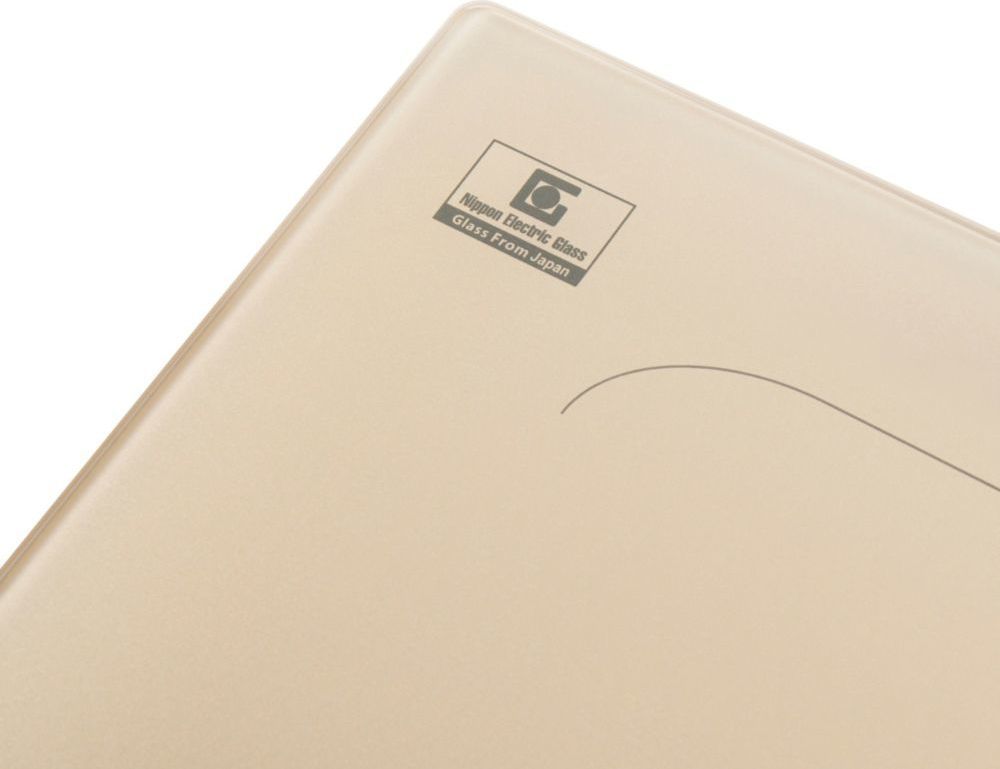 - Индукционная варочная панель бежевого цвета выполнена из износостойкого и жаропрочного стекла Nippon Electric Glass японского производства. Оно не только отличается высокими техническими показателями, но и легко очищается.