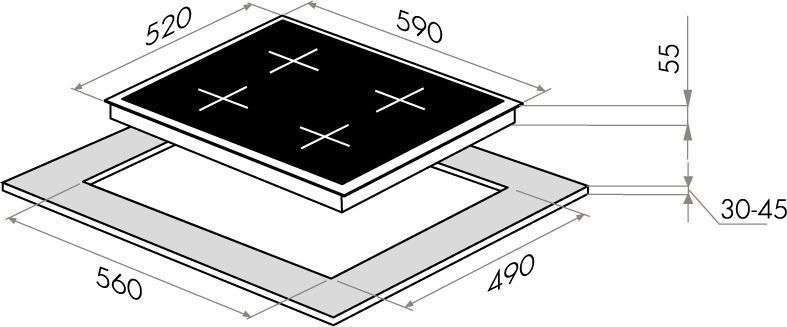 - Размеры для встраивания (Ш/Г), мм: 560х490