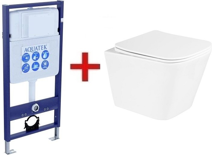 Инсталляция Aquatek Standart 50 INS-0000012 с подвесным безободковым унитазом BelBagno Due BB3103CHR/SC, сиденье с тонкой крышкой микролифт. Кнопка смыва приобретается отдельно.