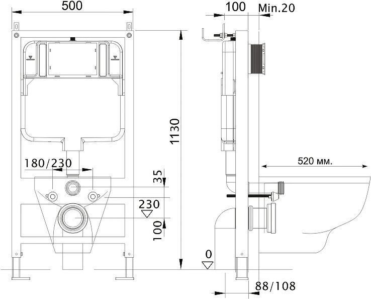 Характеристики инсталляция с унитазом Aquatek+Ideal Standard (INS-0000012+K881201)