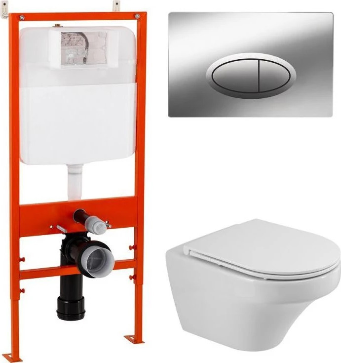 Инсталляция Belbagno BB026 с подвесным безободковым унитазом Cezares Duet, сиденье с крышкой микролифт, кнопка смыва хром глянцевый.