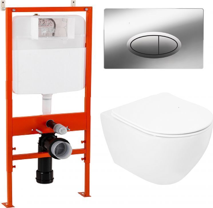 Инсталляция Belbagno BB026 с подвесным безободковым унитазом Cezares Stylus, сиденье с крышкой микролифт, кнопка смыва хром глянцевый.